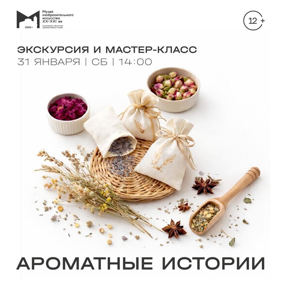 В 14:00 в Музее изобразительного искусства XX-XXI вв. состоится экскурсия и мастер-класс «Ароматные истории». Посетители также познакомятся с работами великих художников XX века. 12+